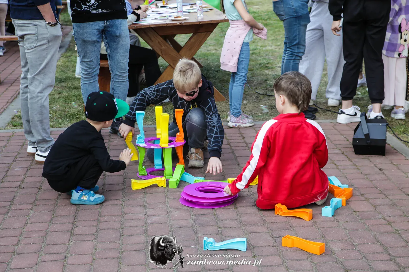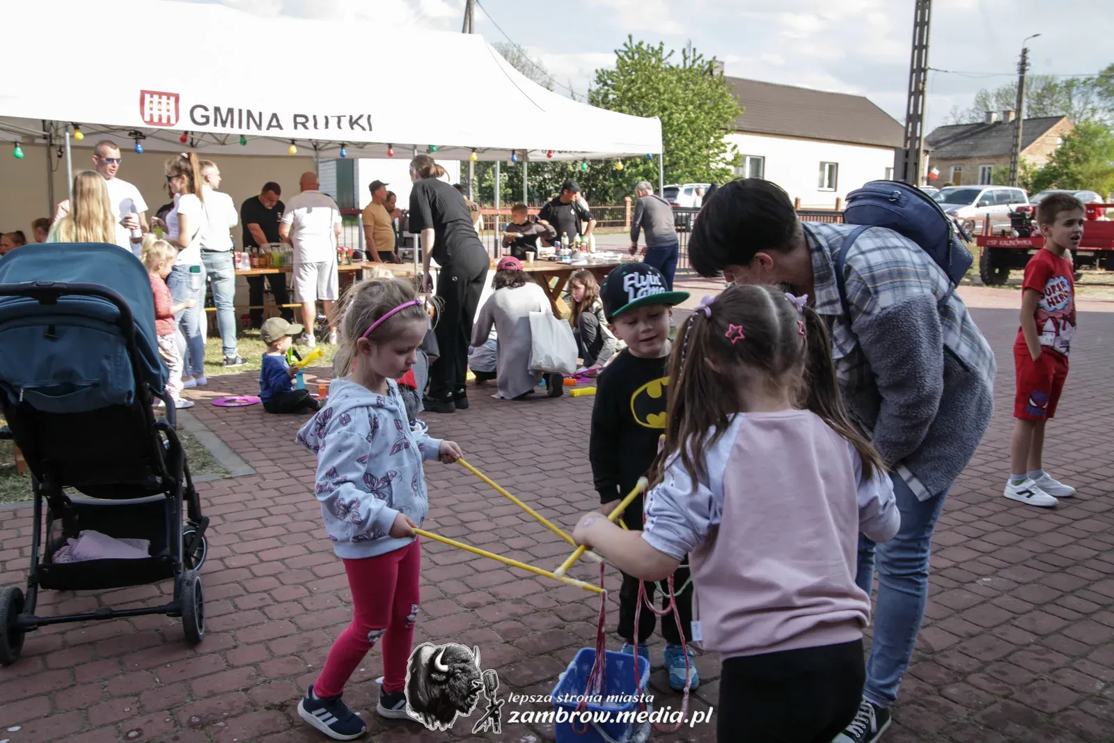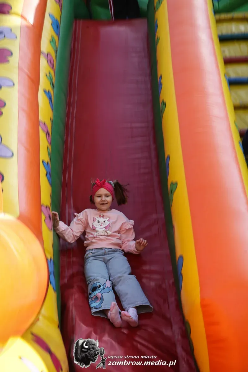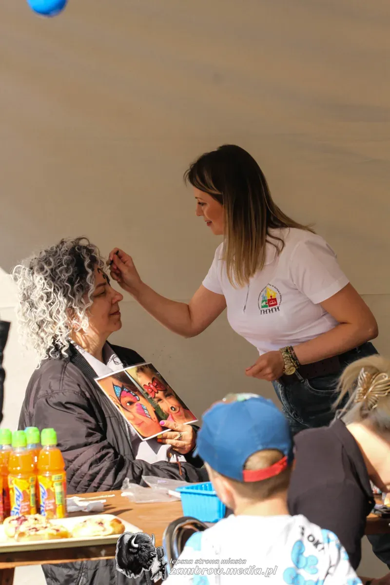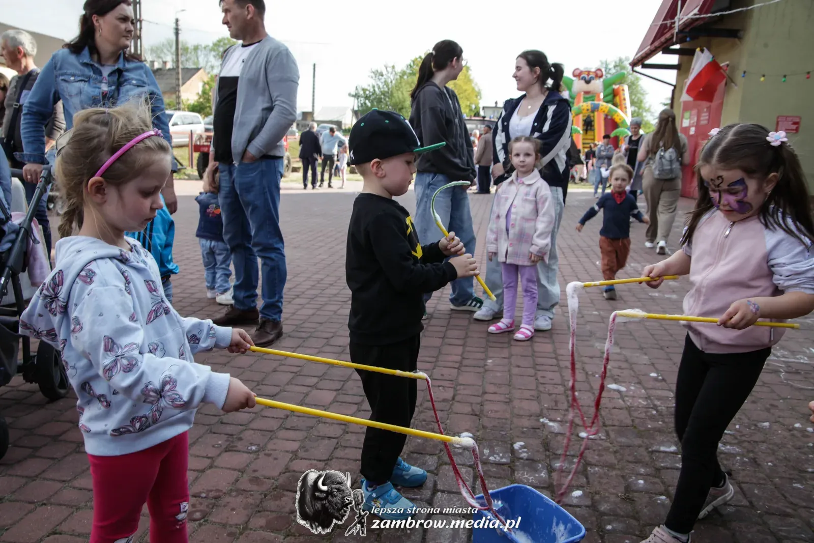 Mali uczestnicy mogli spróbować swoich sił w puszczaniu baniek mydlanych, malowaniu kredą na asfalcie oraz budowaniu konstrukcji z klocków na czas.