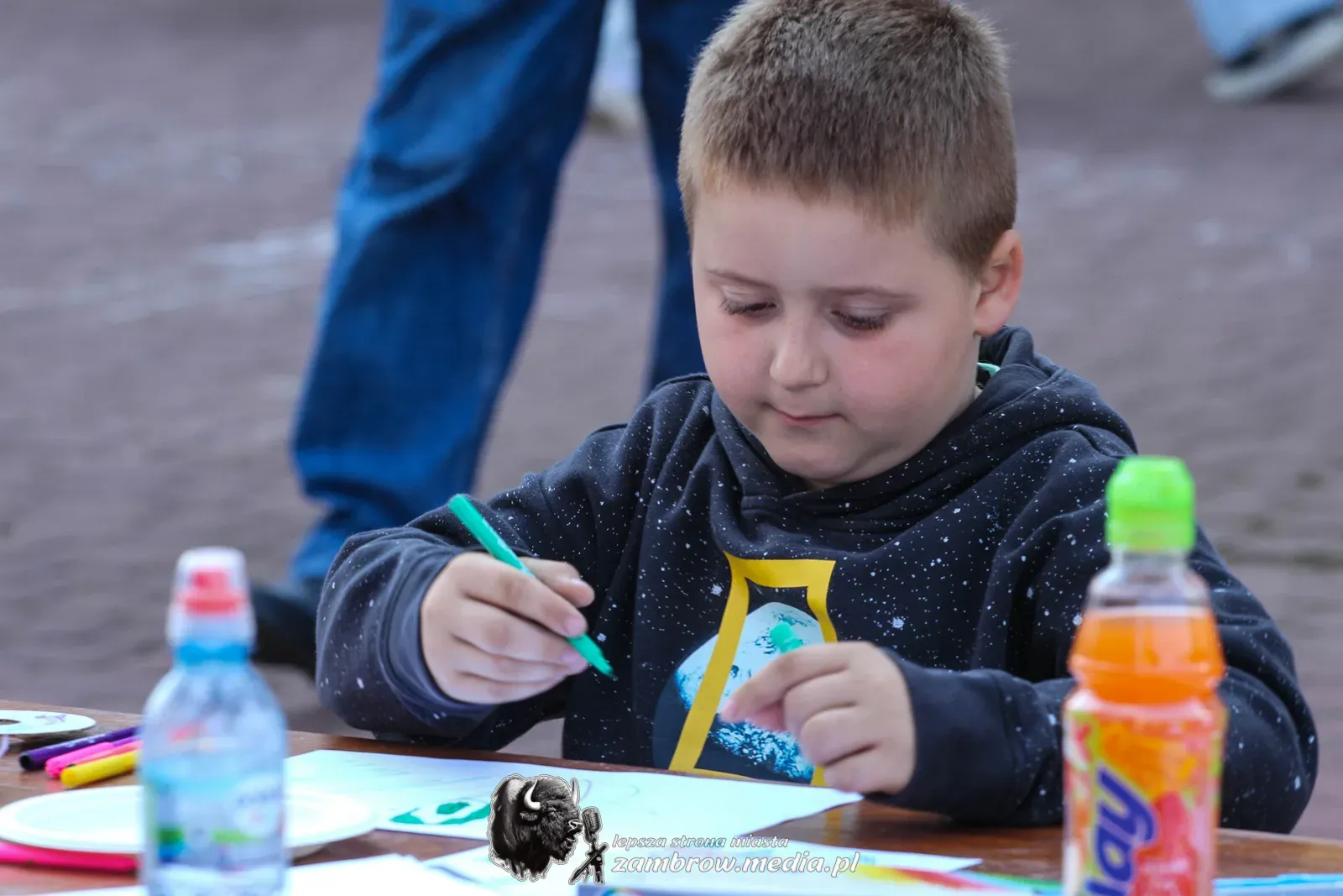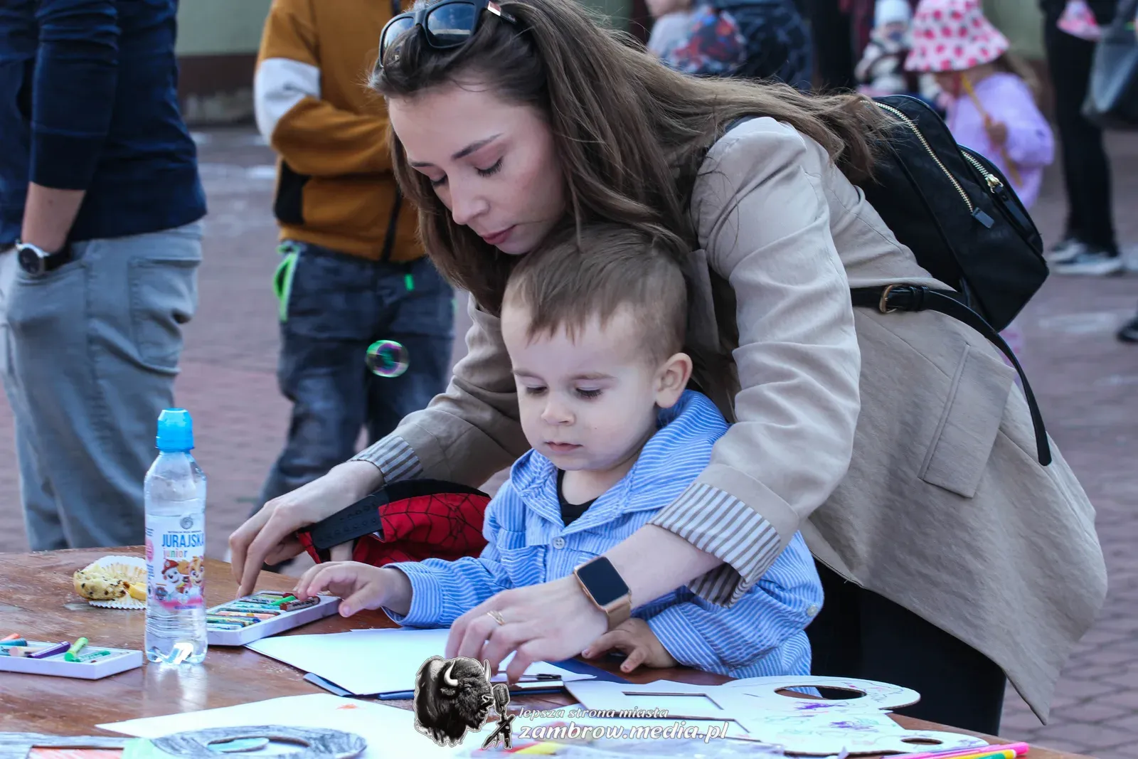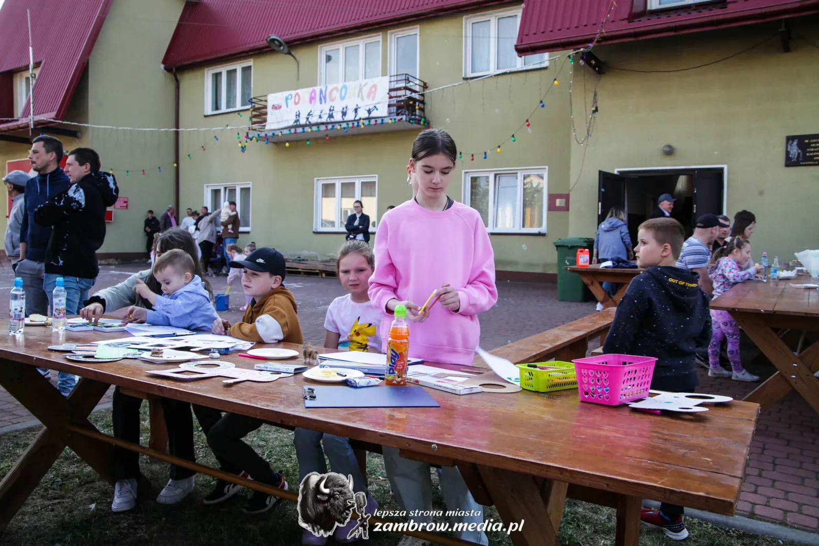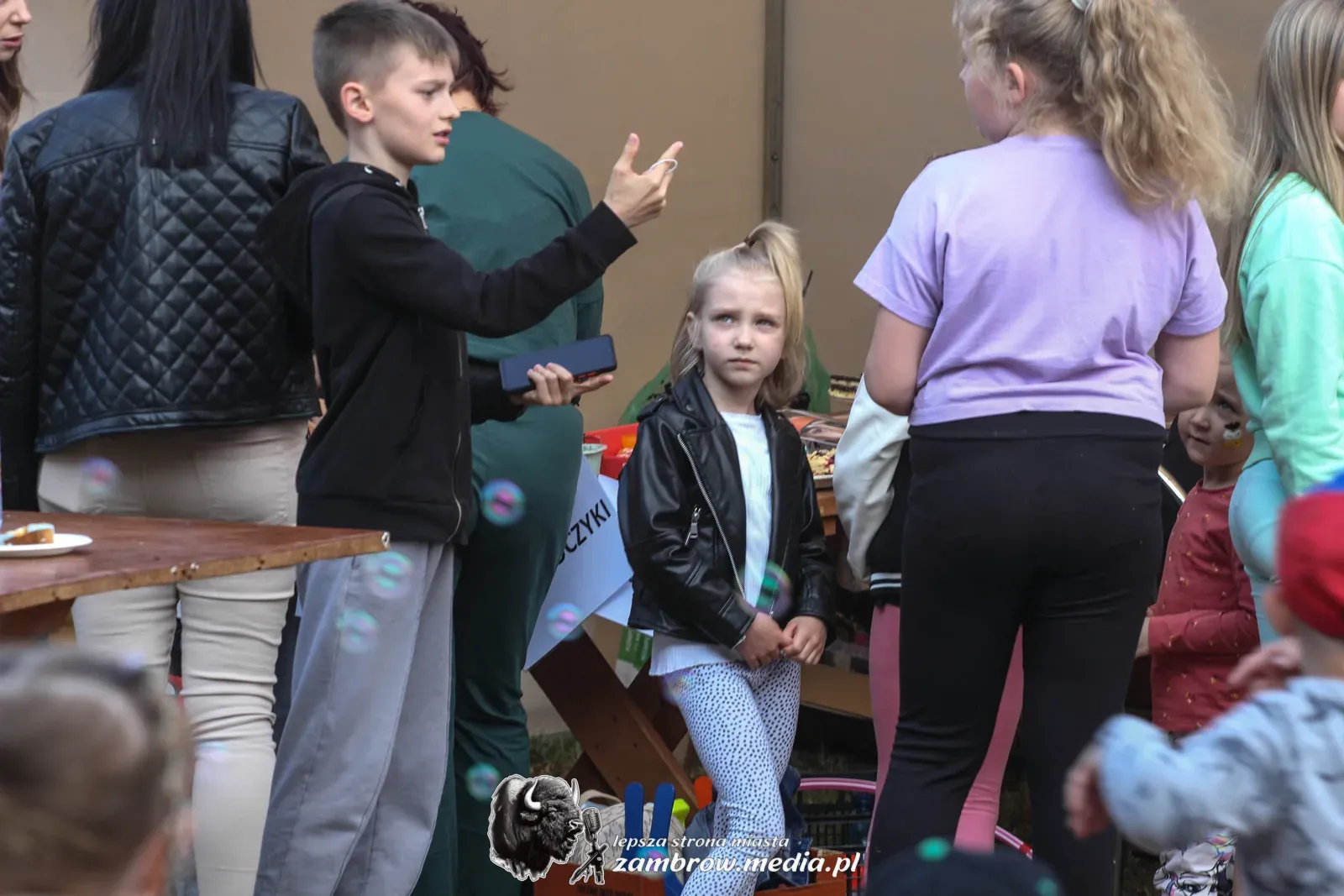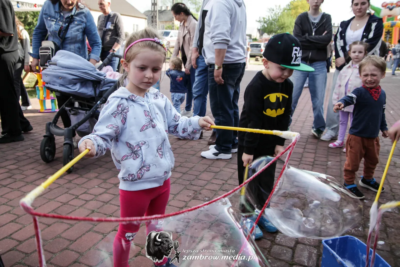 Mali uczestnicy mogli spróbować swoich sił w puszczaniu baniek mydlanych, malowaniu kredą na asfalcie oraz budowaniu konstrukcji z klocków na czas.
