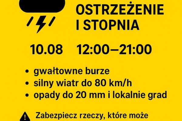 Podlasie, 10 sierpnia 2025 r. – Instytut Meteorologii i Gospodarki Wodnej (IMGW-PIB) wydał ostrzeżenia pierwszego stopnia przed gwałtownymi burzami dla województwa podlaskiego. Alerty obowiązują dziś, w niedzielę, od godz. 12:00 do 21:00 i obejmują m.in. powiaty bialski, łosicki, radzyński oraz parczewski. Prawdopodobieństwo wystąpienia zjawisk oceniono na 80%. Synoptycy przewidują: Niestabilna pogoda jest skutkiem napływu chłodnego…
