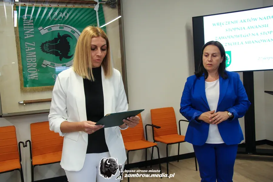 W dniu 27 sierpnia 2025 roku w Urzędzie Gminy Zambrów odbyła się wyjątkowa uroczystość wręczenia aktów nadania stopnia awansu zawodowego nauczyciela mianowanego.
